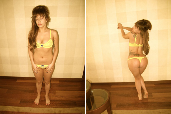 Lady Gaga struck back at tabloid attacks on her weight, posting photos of herself wearing only a bra and panties on her fan website Tuesday. The singer’s blog, titled “A Body Revolution 2013,” invites fans to “be brave and celebrate with us your ‘perceived flaws,’ as society tells us,” by posting their own photos. “May we make our flaws famous, and thus redefine the heinous,” Gaga wrote.