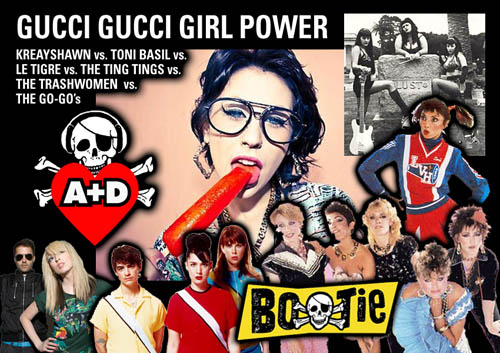 This week, we’re gonna show some love to the ladies! And we cover a few decades of female fierceness in the process. SF’s Adrian & Mysterious D – the unstoppable duo who created the Bootie club franchise – just dropped this on the Bootie Blog, and it had me doing cartwheels in my pajamas this morning! Check this: It features Oakland upstart rapper Kreayshawn on the mic, bouncing around to Toni Basil, Le Tigre, The Ting Tings, The Go-Go’s, and 90’s riot grrrls, The Trashwomen – whose guitarist is actually Kreayshawn’s mother! And I dedicate this mashup to The Go-Go’s, who just got their long-deserved star on the Hollywood Walk Of Fame today! You go, girls!