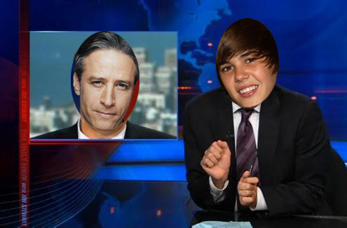 In a desperate attempt to appeal to the only demographic he just can’t seem to grasp (People with brains), Justin Bieber appeared on The Daily Show last night, taking over the reigns for the first few minutes of the show. Aw hell naw, if I wanted to see a douche with bad hair spout the news, I’d watch O’Reilly.