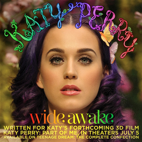 “Wide Awake” was written for her upcoming film, “Katy Perry: Part of Me”. She began documenting her California Dreams Tour, consisting of 124 performances, over a year ago. To be released on 5th July 2012, “Katy Perry: Part of Me” will be a first-ever big-screen look at the international superstar’s life both on and off-stage. Said Katy, “I am so excited to paint the silver screen in 3D color with help from our friends at Paramount and Imagine. For the last year and a half, I have intimately documented my life both on and off the stage of The California Dreams Tour. I want to take you behind the cotton candy clouds and reveal the highs and lows and nuts of bolts of this extraordinary ride. I promise you, after seeing this film, you will truly know me.” Katy Perry is a global superstar whose two albums have generated a string of No. 1 hit singles and multi-platinum sales over the past four years. The special edition “Teenage Dream: The Complete Confection” available now, features three new songs, including “Part of Me,” her 7th Hot 100 No. 1 hit, and “Wide Awake”.