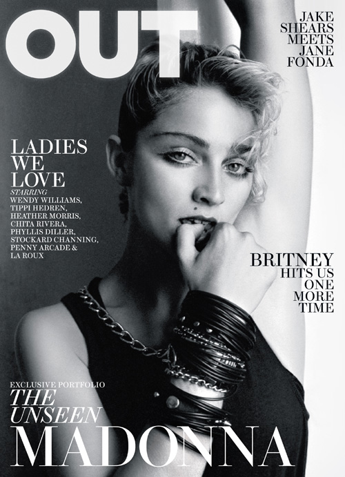 The “Ladies We Love” is dedicated to the women who inspire, scandalize, educate, and excite us. In addition to Madonna and Britney Spears, whose was released on last Wednesday, the “Ladies We Love” issue celebrates Wendy Williams, Tippi Hedren, Heather Morris, Phyllis Diller, Stockard Channing, and others. Log on to out.com now for more never-before-seen Madonna photos.