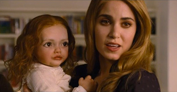 I’ve been going back on forth whether to post this piece for the better part of a day now. The “for” argument being that it gives me another chance to sh!t on those awful Twilight movies again, and the “against” argument being that the last one came out over a year ago and now the series is no longer relevant. That being said, I just wrote the most depressing post I’ve ever written for this site, so here comes the levity! Apparently, Breaking Dawn was supposed to feature a super creepy doll as Renesmee, which was eventually banished back to whatever circle of hell it came from in favor of a slightly-less creepy CGI baby. Which kind of sucks, because let’s be real: The movies were awful, and including this horrifying creature would have totally brought it into camp territory. But you had to settle for mediocrity, didn’t you? Shame on you!