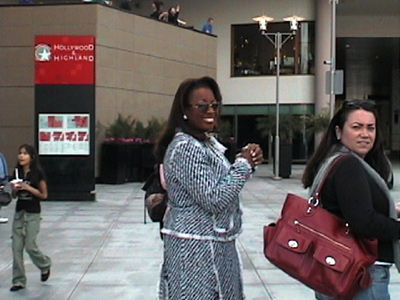 oh lucky day – i dug out my camera and headed around the corner to snap some more pics for your viewing pleasure – and as im leaving to come back home – who do i see but starr jones !!! – she was with some camera folks – and not many people were around – so i said “starr we love you – can i snap one picture?” she said thanks – and you can see the picture below! and she looked great in person – thinner than i imagined – so you go girl and work that red carpet and say hey to bw for me! i wanted to mention popbytes but i didn’t – it was quick and she was busy! thanks starr! i raced home to post her pic along with the other pics – i will be back later to cast my predictions for the top categories for tomorrow’s big show!