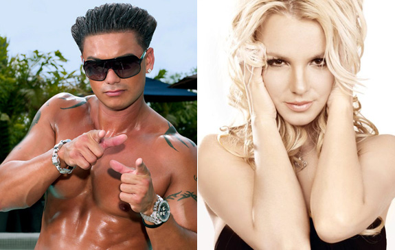 I know, I know: four music-related posts in a row? MADNESS. We’re turning into one of those music blogs you keep hearing about. Anyway, continuing with today’s unofficial all music blogging, Jersey Shore star Pauly D has signed onto to be the DJ for Britney Spears‘ tour, which I can only assume has something to do with Brit’s love of Cheetos and anything else that’s orange, baked and full of saturated fat.